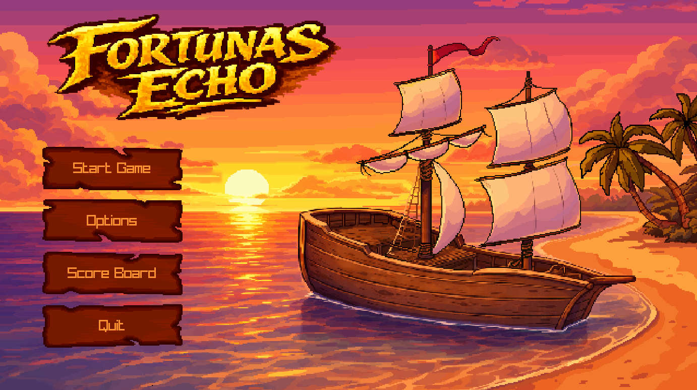 In Fortuna's Echo, a Survivor-like game with a retro feel, you steer your pirate ship, stranded on the high seas, through uncertain waters.